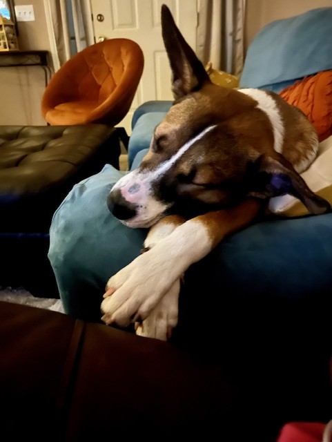Mind you, Roscoe has begun living his best life. It didn’t take him very long to figure out he hit the motherload for a family and he was thrilled. He showed us this by way of really making himself at home.